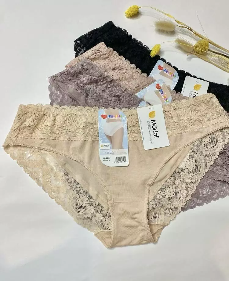 Жіночі трусики із мякого модалу.Гарні приглушені кольори,прикрашені кружевом. В упаковці 12 шт. різних кольорів (зразки кольорів на фото)