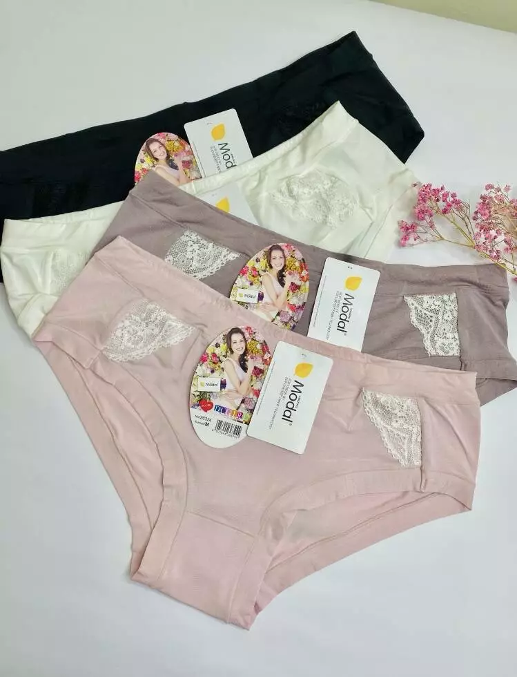 Жіночі трусики із мякого модалу.Гарні приглушені кольори,прикрашені кружевом. В упаковці 12 шт. різних кольорів (зразки кольорів на фото)